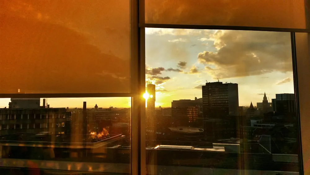 - 夕方の西日がガラスビルで反射して部屋に直撃